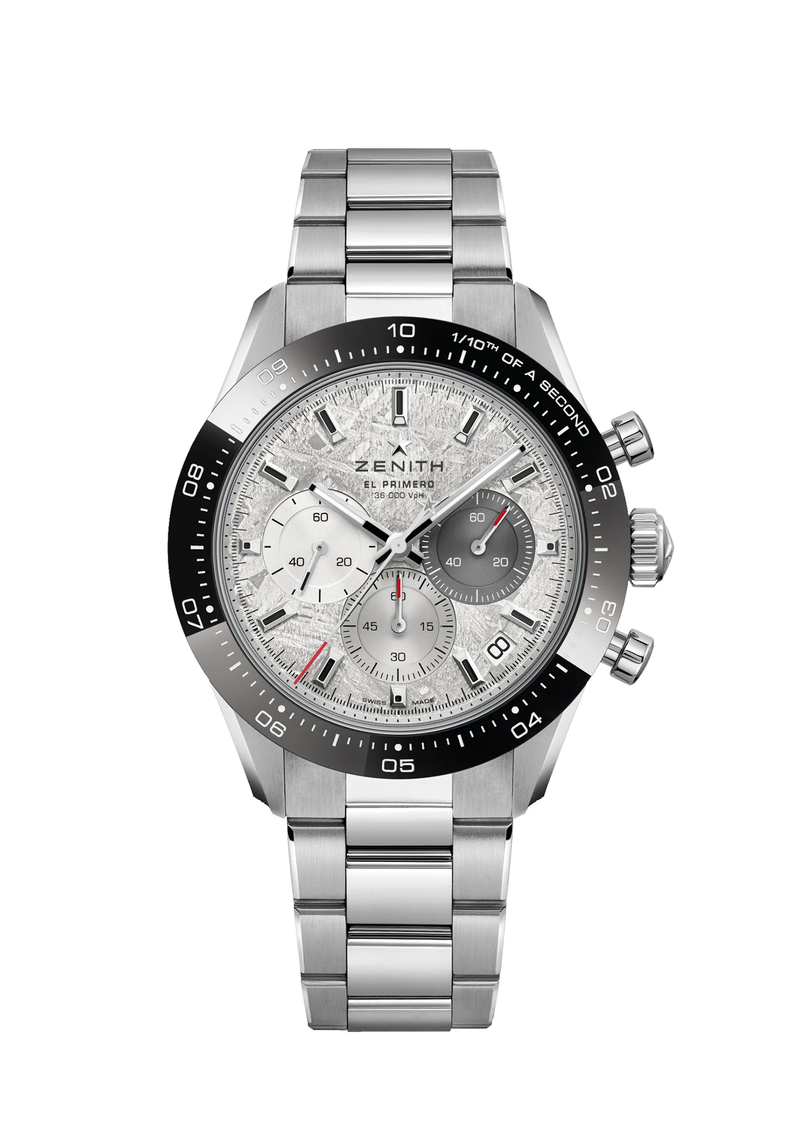 Nel 1994 nacque la collezione Zenith Chronomaster, come evoluzione naturale del leggendario movimento El Primero, introdotto da Zenith nel 1969. Nel 2021 la casa di Le Locle ha sorpreso il mercato presentando la collezione il Chronomaster Sport caratterizzato dalla lunetta in ceramica. La linea è stata arricchita nel tempo di varie versioni fino all’ultimo arrivato: Il Chronomaster Sport Meteorite.