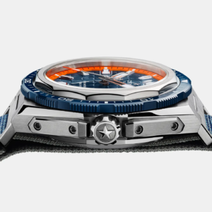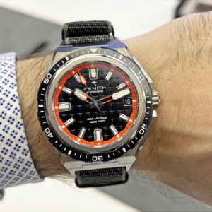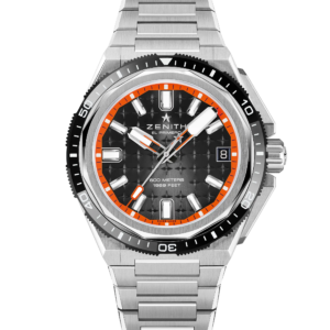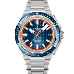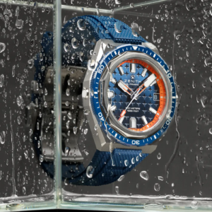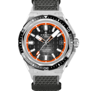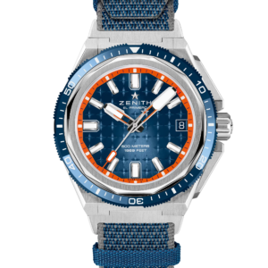 Il Defy Extreme Diver può essere scelto in colorazione nera o blu e in entrambi i casi i quadranti presentano dei vistosi dettagli arancioni e hanno una lavorazione superficiale che ricorda molto quella introdotta con gli Skyline. Nel corredo sono compresi il bracciale in titanio, il cinturino in gomma con una finitura superficiale che replica l’effetto della tela e un cinturino passante in tessuto. Quest’ultimo è ricavato riciclando delle reti da pesca, dimostrando quindi un occhio di riguardo anche per le tematiche ambientali. Grazie al pratico sistema di sgancio rapido è possibile passare in pochi istanti da uno all’altro. Il prezzo di listino del nuovo Zenith Defy Extreme Diver è di 11.800€.