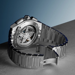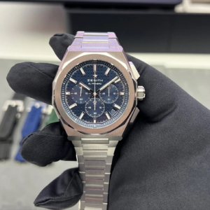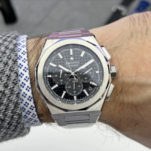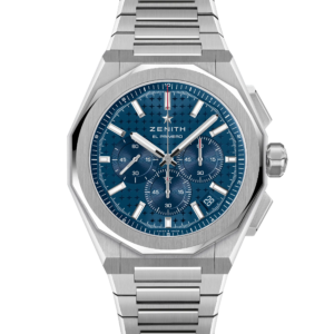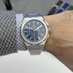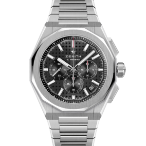 Partendo dal Defy Skyline presentato nel 2022, successivamente rivisto anche in versione scheletrata, Zenith completa la gamma con l’aggiunta del cronografo, una complicazione fortemente legata all’identità del marchio di Le Locle. La cassa in acciaio è poco più grande dei modelli solo tempo, arrivando a 42mm di diametro e per il suo design prende spunto dalla cassa ottagonale introdotta con il primo Defy. I pulsanti seguono l’andamento della cassa, senza sporgere troppo dalla carrure. Il quadrante riprende quello già visto sugli altri modelli Skyline, con la trama a stelle che si ricollega al logo di Zenith.