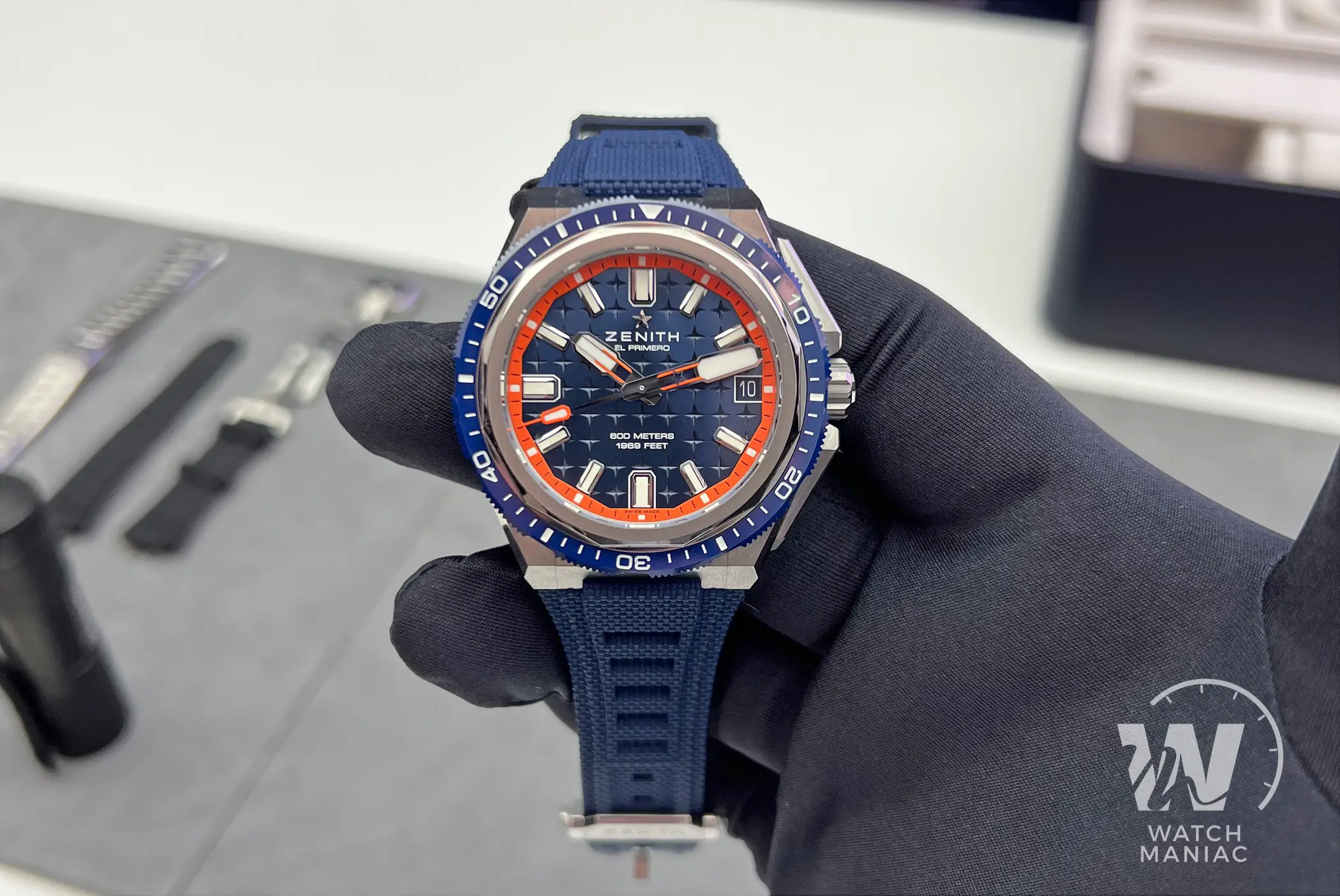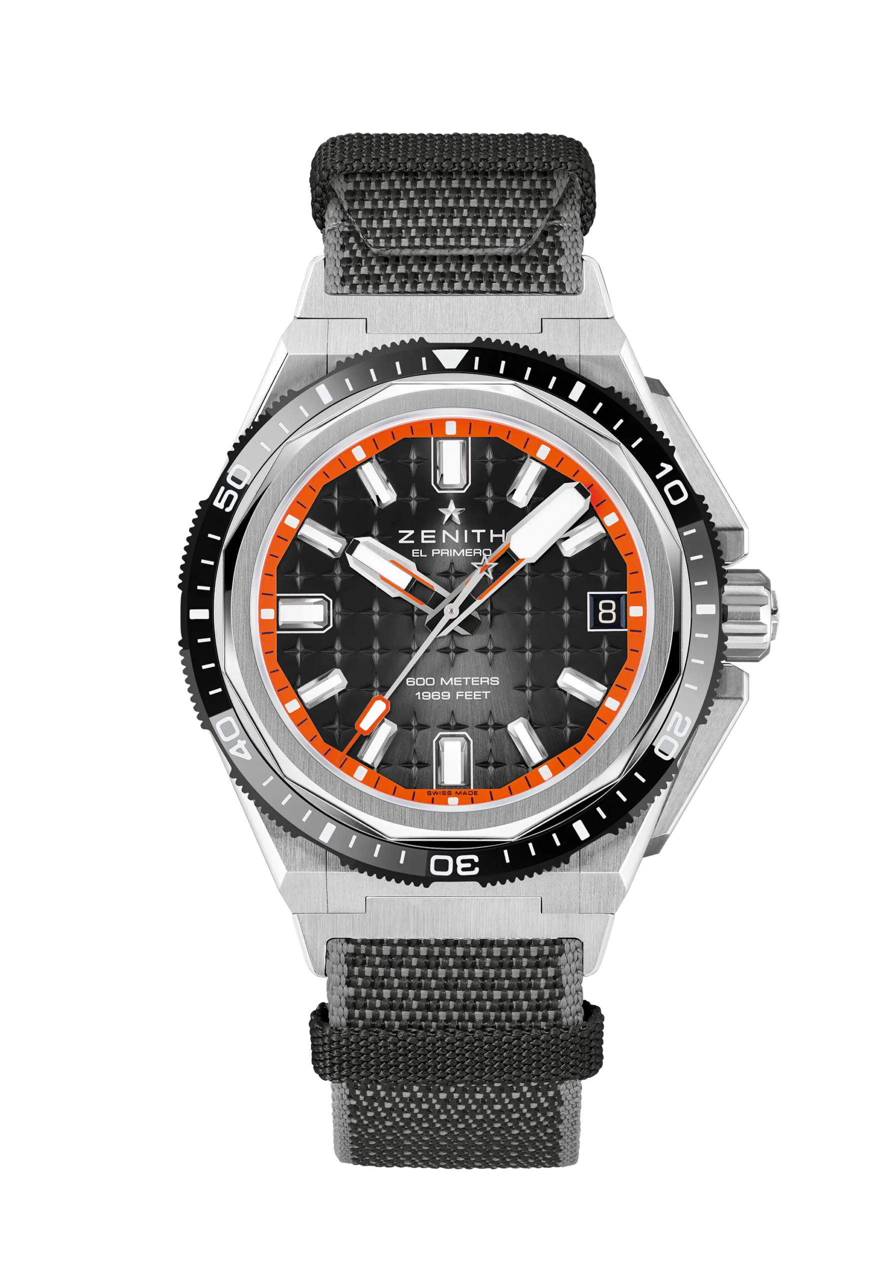 Il Defy Extreme Diver può essere scelto in colorazione nera o blu e in entrambi i casi i quadranti presentano dei vistosi dettagli arancioni e hanno una lavorazione superficiale che ricorda molto quella introdotta con gli Skyline. Nel corredo sono compresi il bracciale in titanio, il cinturino in gomma con una finitura superficiale che replica l’effetto della tela e un cinturino passante in tessuto. Quest’ultimo è ricavato riciclando delle reti da pesca, dimostrando quindi un occhio di riguardo anche per le tematiche ambientali. Grazie al pratico sistema di sgancio rapido è possibile passare in pochi istanti da uno all’altro. Il prezzo di listino del nuovo Zenith Defy Extreme Diver è di 11.800€.