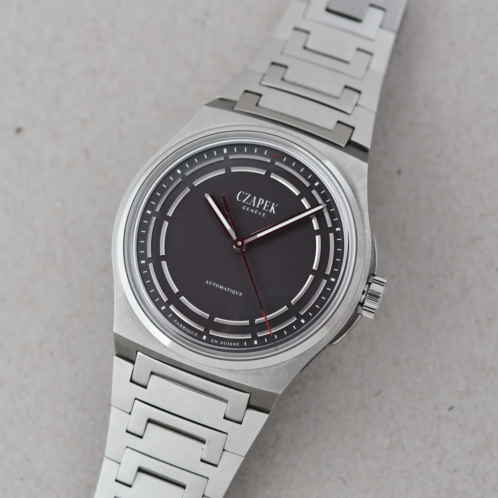 Czapek è un marchio che sta riscuotendo un crescente successo dalla sua rinascita in poi, anche in parte trainato dalla tendenza di mercato che sta coinvolgendo praticamente tutti i produttori indipendenti svizzeri di alta orologeria. Tra tutti i modelli proposti fino ad ora, l’Antarctique è senza dubbio quello su cui si è focalizzata principalmente l’attenzione di appassionati e collezionisti. Il nuovo Antarctique Titanium Dark Sector è il primo segnatempo di Czapek realizzato in titanio (di grado 5), non solo per quanto riguarda la cassa ma anche per il bracciale. Grazie all’utilizzo di questo materiale, il peso complessivo è di soli 95g.