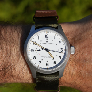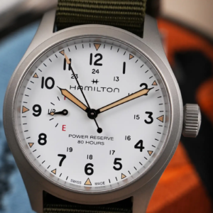 Tra tutte le varie complicazioni, quella che trovo più utile è senza alcun dubbio l’indicazione della riserva di carica. Se già è molto comodo poter aver la certezza dello stato di carica della molla sugli automatici, diventa ancora più importante poter contare su questa funzione sui manuali, a maggior ragione quando hanno un’autonomia estesa che potrebbe farci passare di mente la necessità di ricaricarli. L’unico lato negativo è che l’aggiunta dell’indicatore della riserva di carica potrebbe alterare la pulizia del quadrante e sta quindi alla bravura dei designer riuscire ad integrare una funzionalità in più senza rovinare lo stile dell’orologio in questione. Per tutti gli amanti della carica manuale e dell’indicazione della riserva di carica, diamo il benvenuto ai nuovi Hamilton Kahki Field Power Reserve!