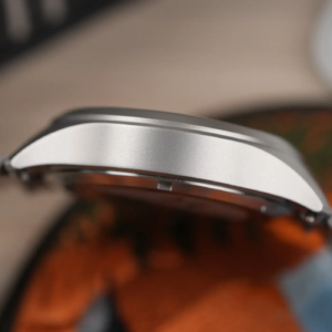 Il bracciale in acciaio ha un design delle maglie a 3 elementi ed è anch’esso interamente micropallinato. È molto flessibile per adattarsi bene alla conformazione del polso e ha una clasp solida con tre fori per la microregolazione fine. Per facilitare la rimozione del bracciale ci sono poi le anse a sgancio rapido, perfette su un orologio come questo che si presta tantissimo a sperimentare anche con cinturini di terze parti.