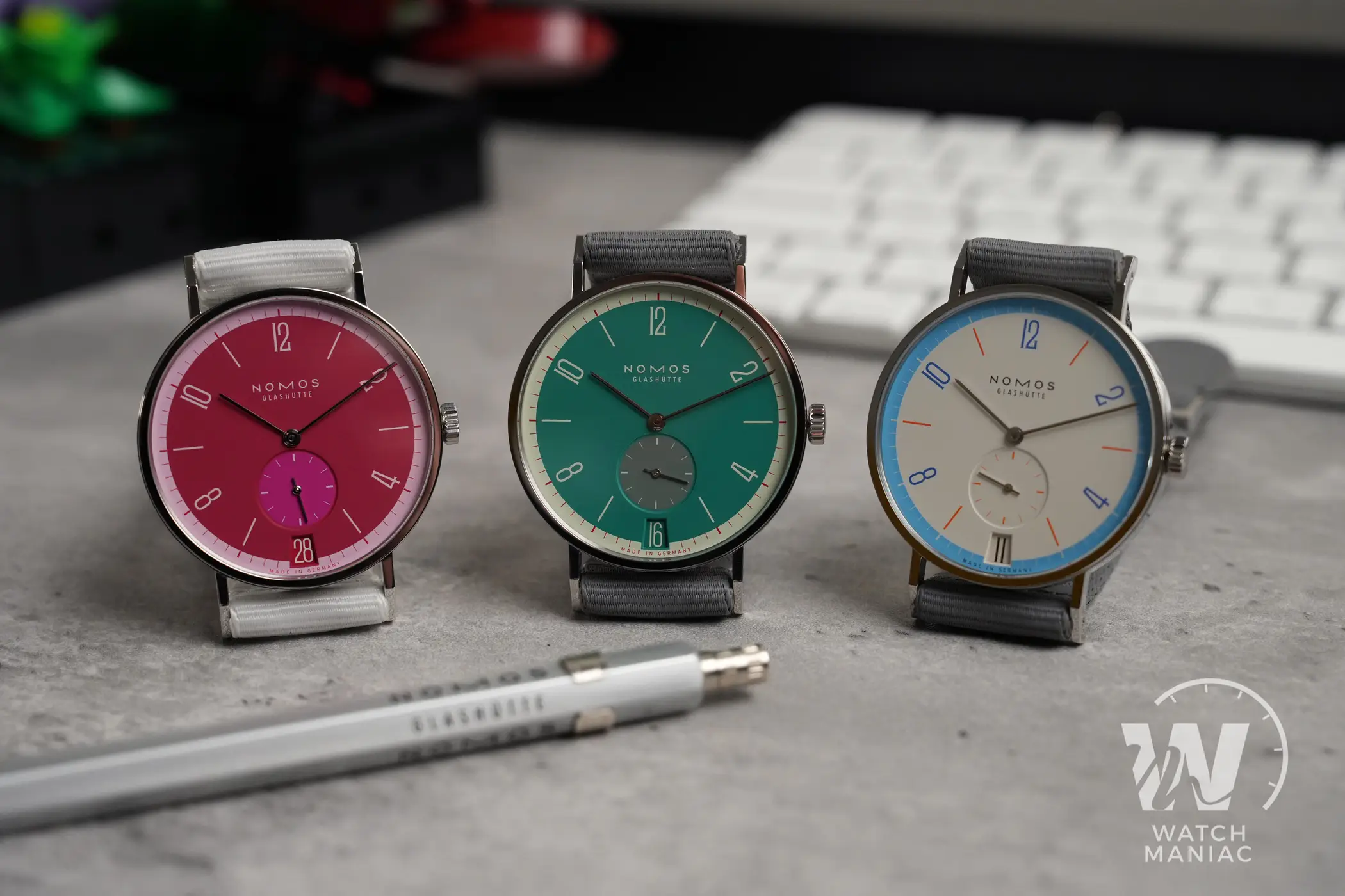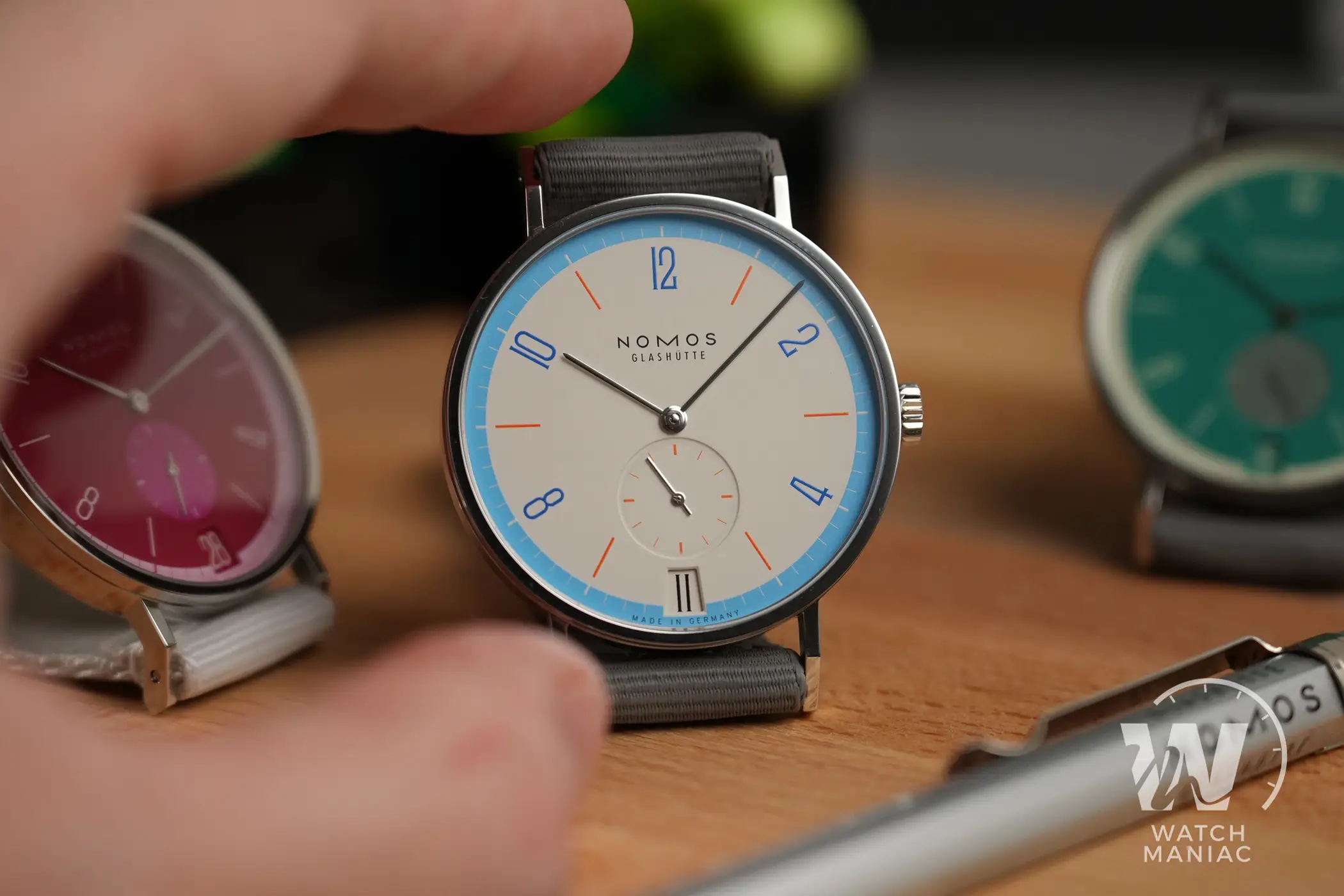 Nomos è un marchio che ha un approccio unico da tanti punti di vista. Intanto per quanto riguarda la produzione di movimenti, il loro fiore all’occhiello visto che vengono realizzati in modo totalmente indipendente a Glashütte, la culla della tradizione orologiera tedesca. Poi anche il design è una caratteristica distintiva del marchio, che è particolarmente abile nel reinterpretare a suo modo lo stile minimalista. C’è poi un altro dettaglio per il quale Nomos si differenzia dalla maggior parte dei produttori. Il fenomeno delle limited edition ha preso ormai piede negli ultimi anni, ma spesso le edizioni numerate vengono vendute a prezzi superiori rispetto alle corrispettive varianti non limitate. Il marchio tedesco, invece, ha sempre proposto le proprie limited a prezzi addirittura inferiori. A Watches and Wonders 2024 sono state presentate ben 31 varianti di Tangente e queste sono tre delle colorazioni che mi hanno colpito di più.