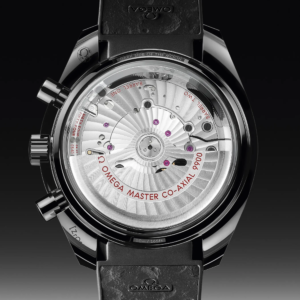 In questa referenza il profilo della cassa si riduce ulteriormente a circa 13 mm, grazie all’adozione del movimento Co-Axial Master Chronometer 9908 a carica manuale. Anche in questo caso la finitura è “Black Edition”, con platina principale e ponti bruniti opachi e incisioni laccate nere.