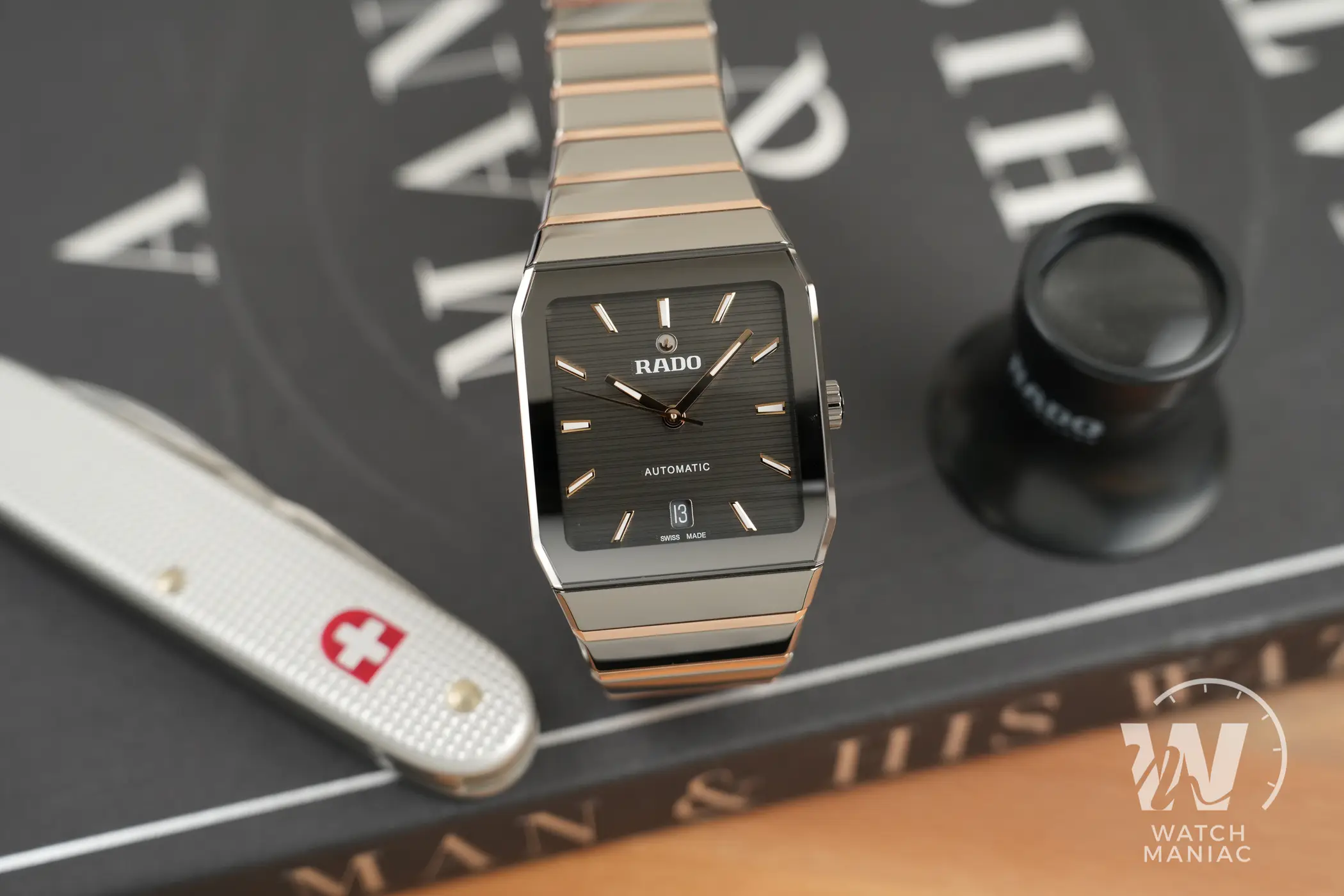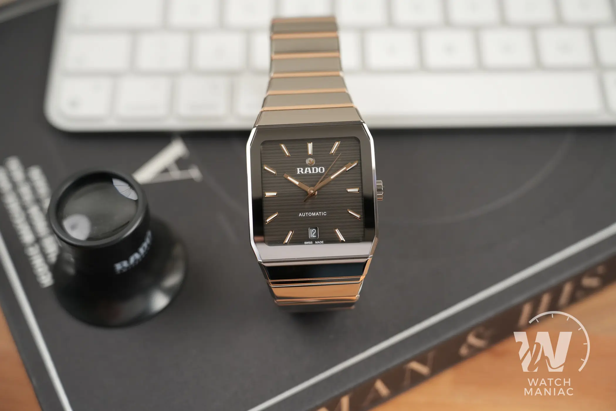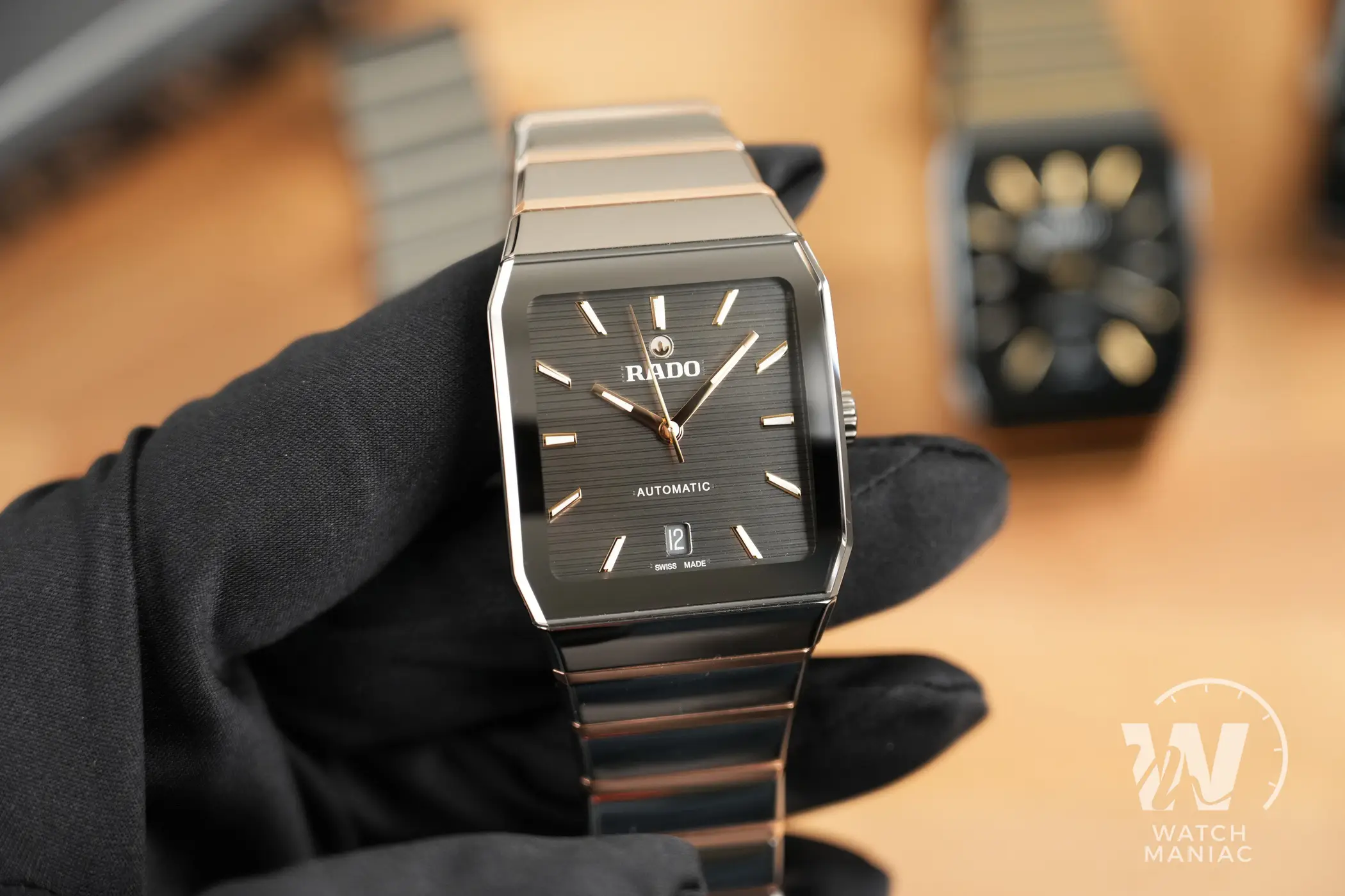Il Rado Anatom fu presentato per la prima volta nel 1983. Si trattava di un modello decisamente all’avanguardia, sia per il design che per le soluzioni tecniche adottate. La sua particolarità principale era data dal profilo curvo della cassa e dello zaffiro (il primo della storia ad essere realizzato con quella forma), una scelta non soltanto estetica ma pensata appositamente per migliorare l’ergonomia al polso. Per omaggiare quell’importante pagina della sua storia, il marchio svizzero nel 2023 ha presentato una riedizione moderna dell’Anatom, con cinturino in gomma e movimento automatico. Nel 2025 la gamma si è ampliata con l’aggiunta di 5 nuove referenze con bracciale in ceramica hi-tech, che accentua l’eleganza di questo design.