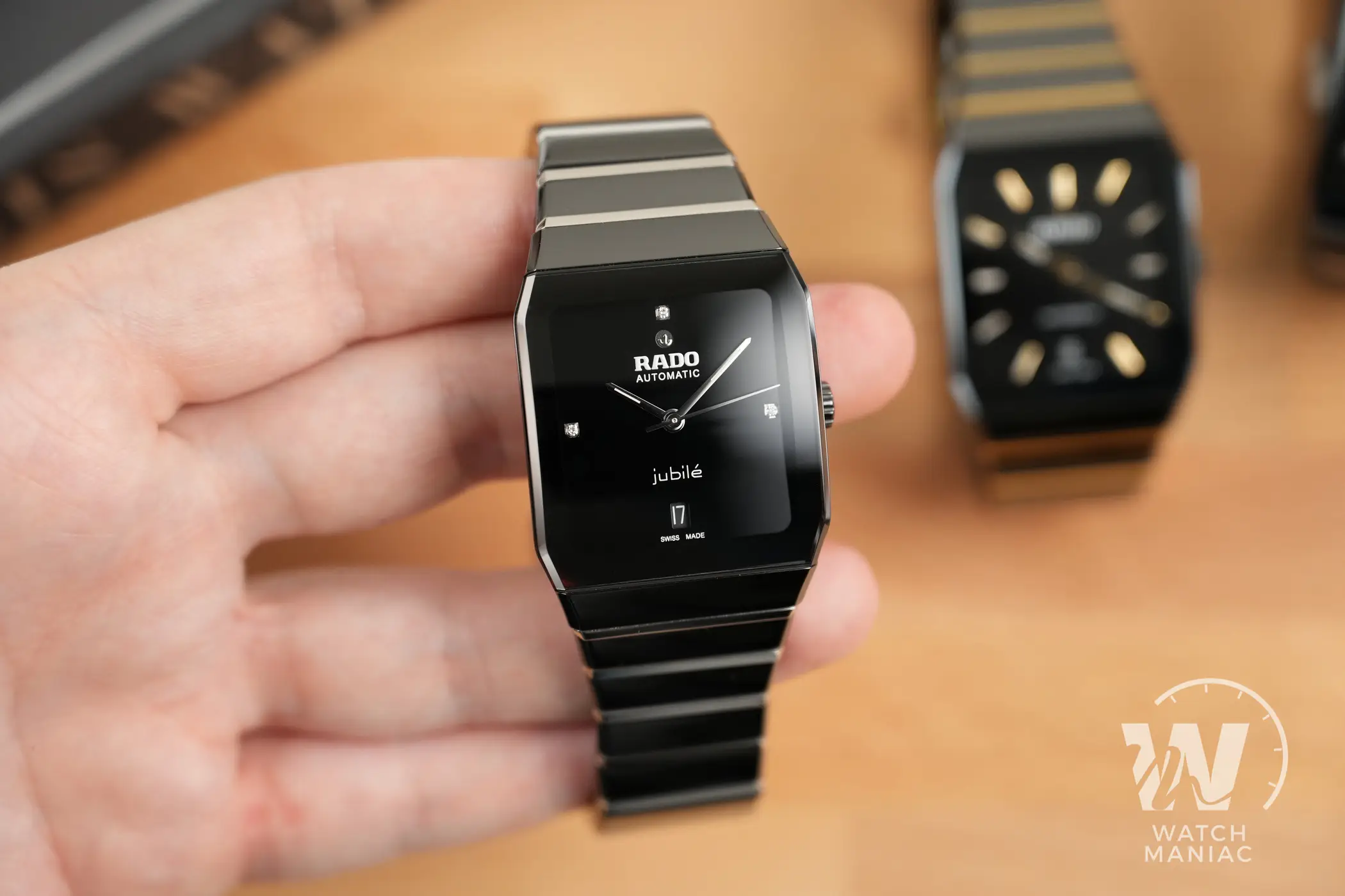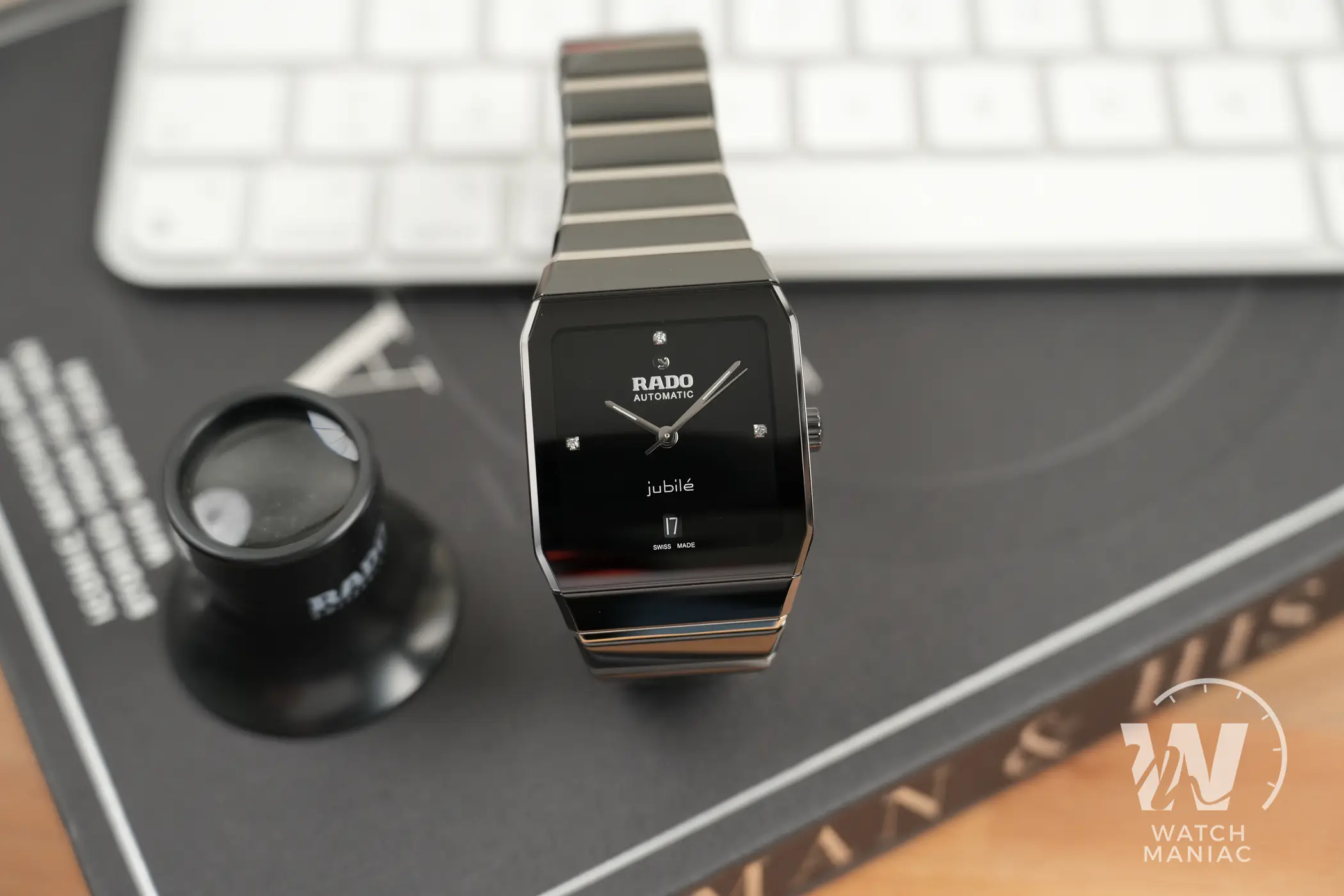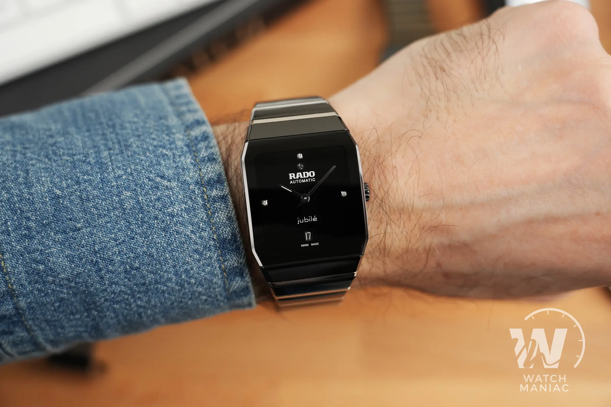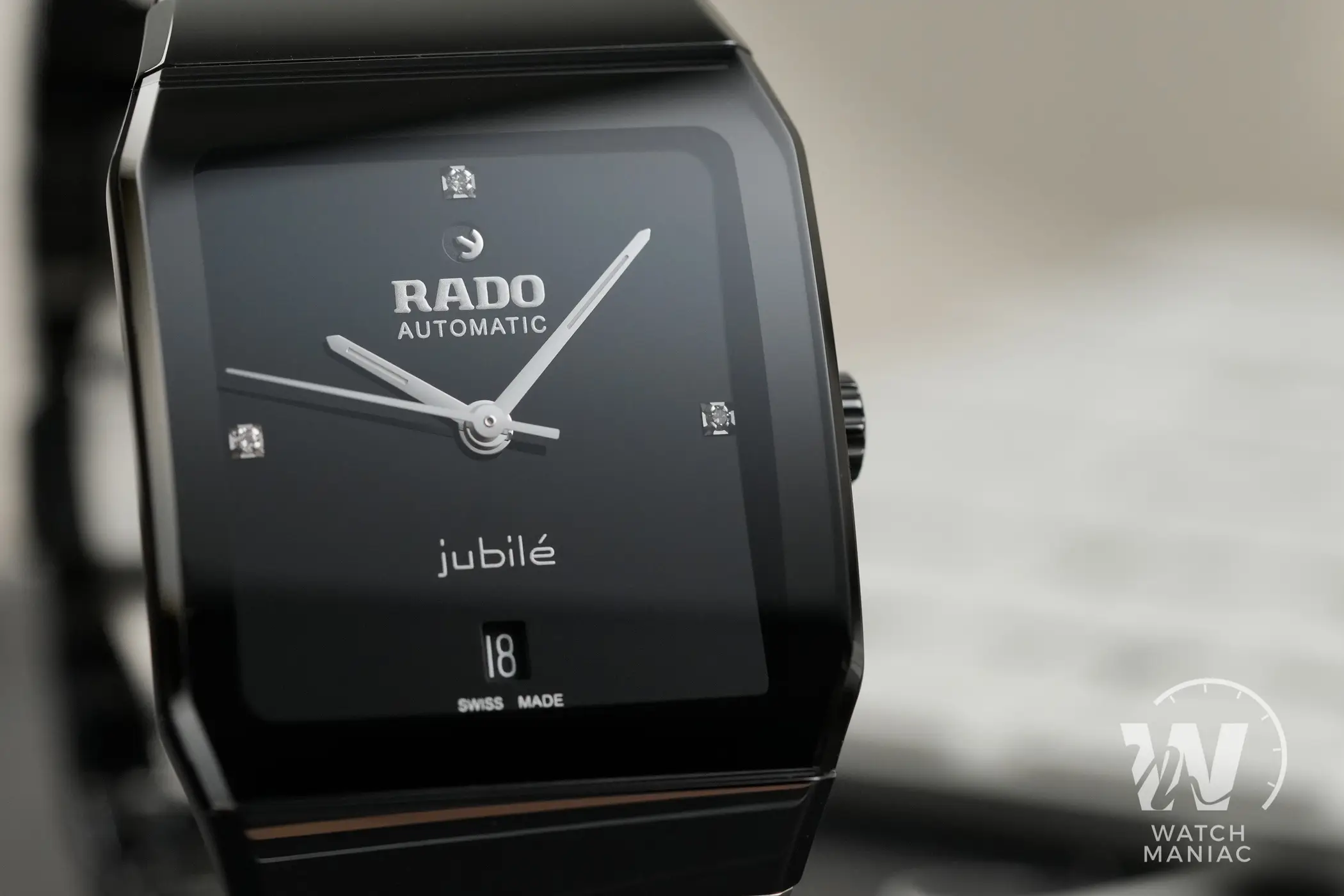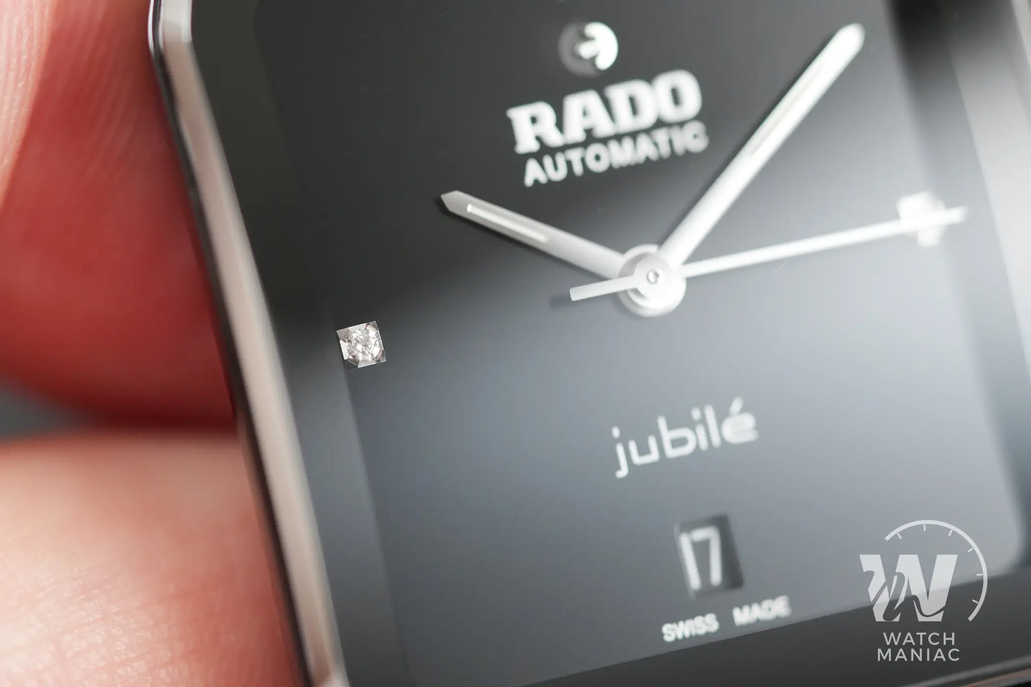 Su tutti troviamo la finestra della data in basso a ore 6 e la tipica ancora di Rado che è libera di ruotare seguendo i movimenti del polso. Gli indici a bastone sono applicati con cornici lucide ben rifinite. Fanno eccezione solo le referenze Jubilé che hanno un schema più minimalista e orientato all’eleganza. Lo stesso discorso vale anche per le sfere, a bastone e dallo spessore più evidente su tutte la diverse varianti, più sottili e slanciate sui modelli con diamanti.