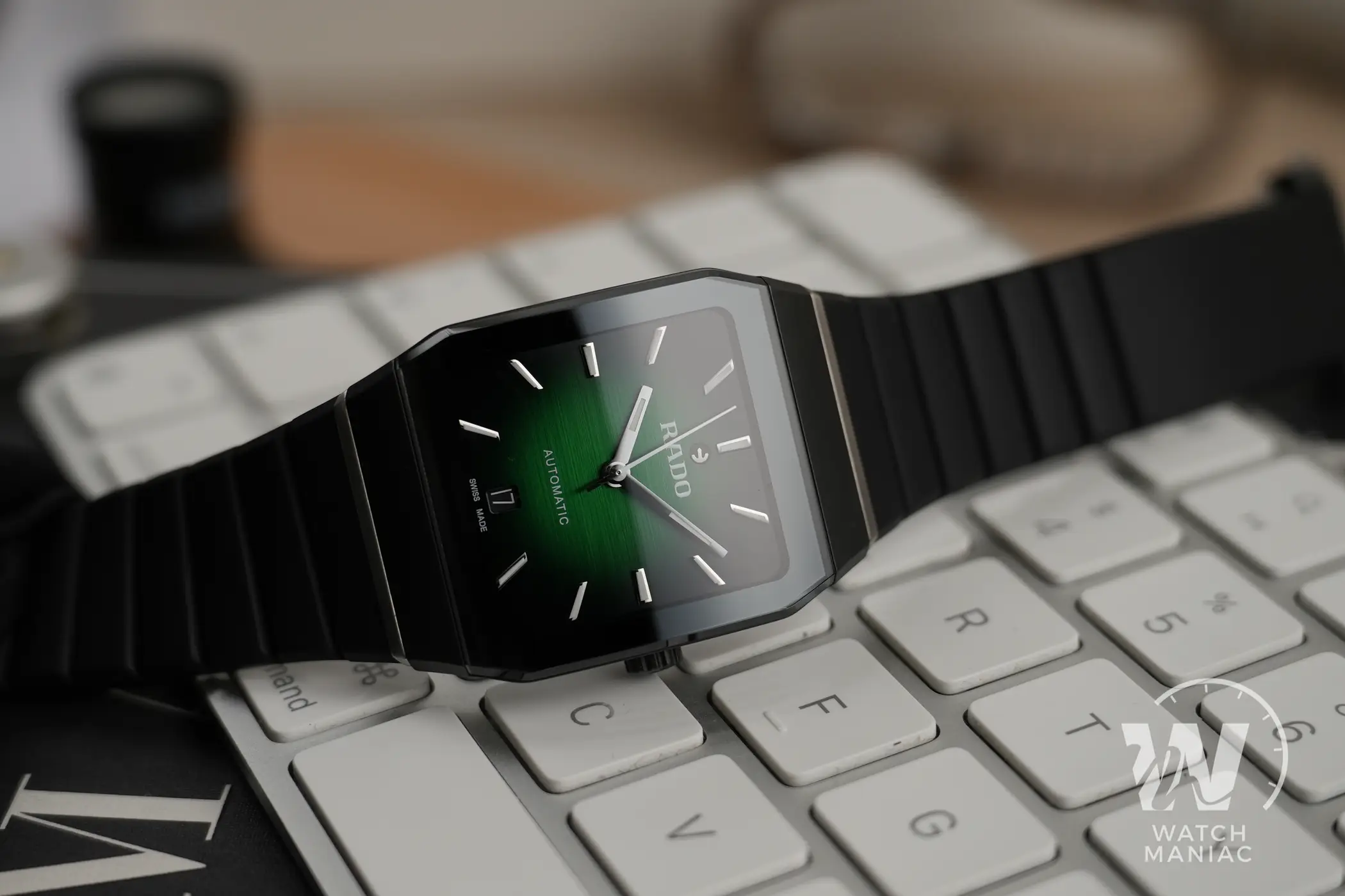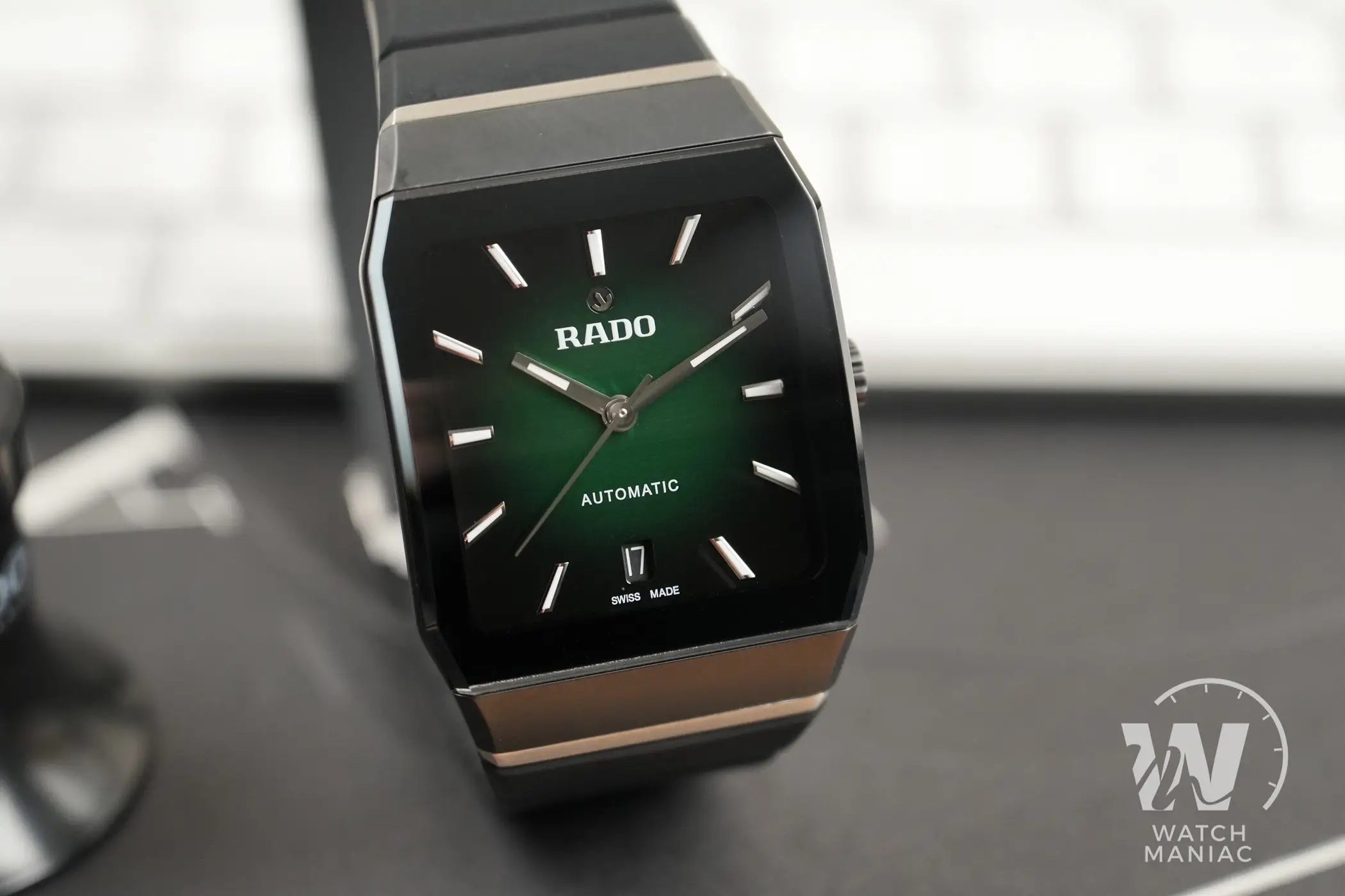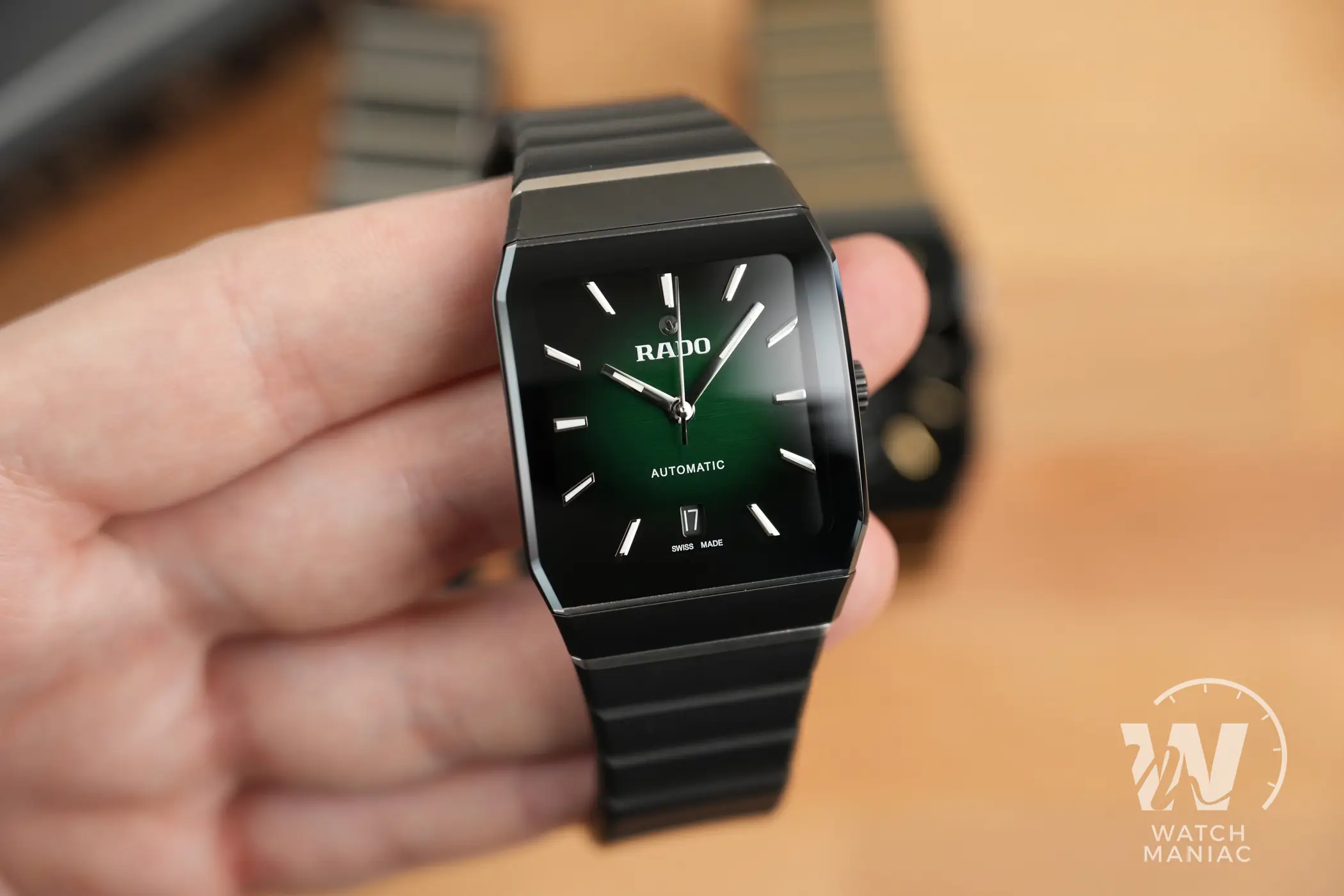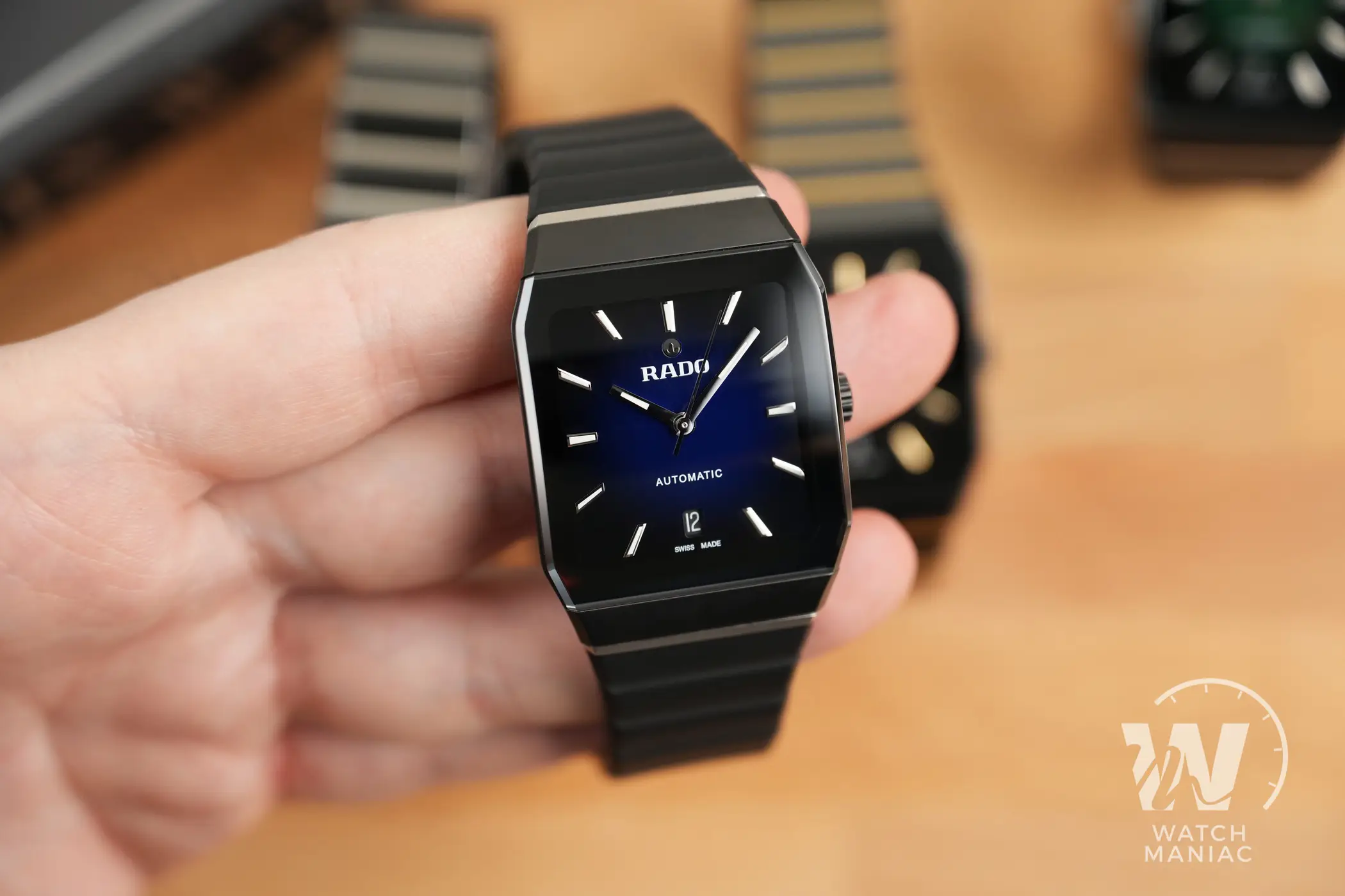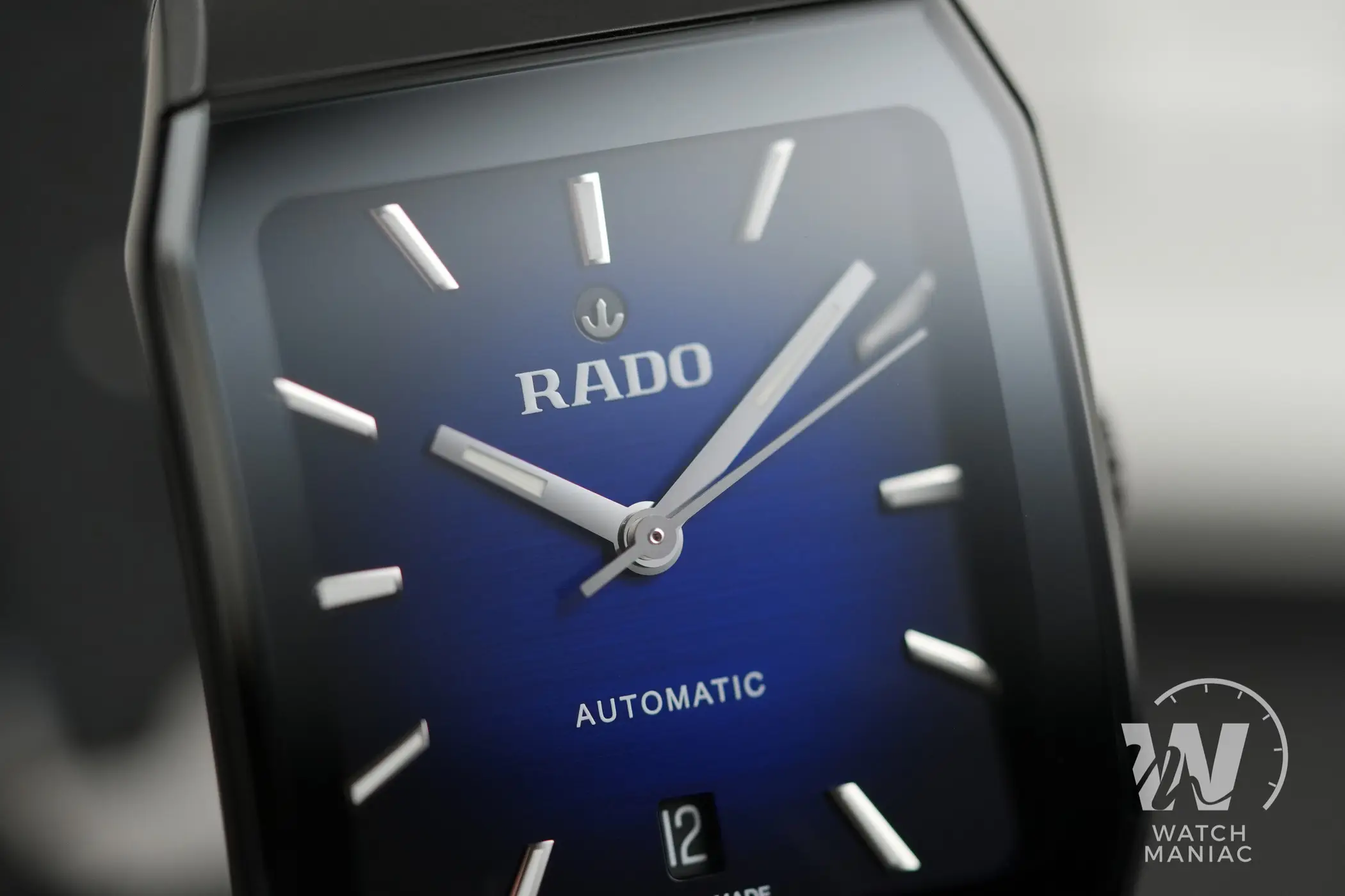 I quadranti cambiano a seconda del modello. Sui Rado Anatom presentati quest’anno c’è una lavorazione a solchi orizzontali piuttosto evidenti, che risaltano soprattutto nella colorazione grigia della variante al plasma. Le versioni Jubilé invece sono in un più elegante nero lucido, un perfetto abito da sera che si abbina alla presenza dei brillanti. Sugli Anatom con cinturino in gomma ci sono poi i quadranti più sportivi e colorati della collezione, con una spazzolatura orizzontale che crea un bellissimo effetto a seconda dell’angolazione della luce e fa risaltare di più o di meno la tonalità accesa specifica della variante.