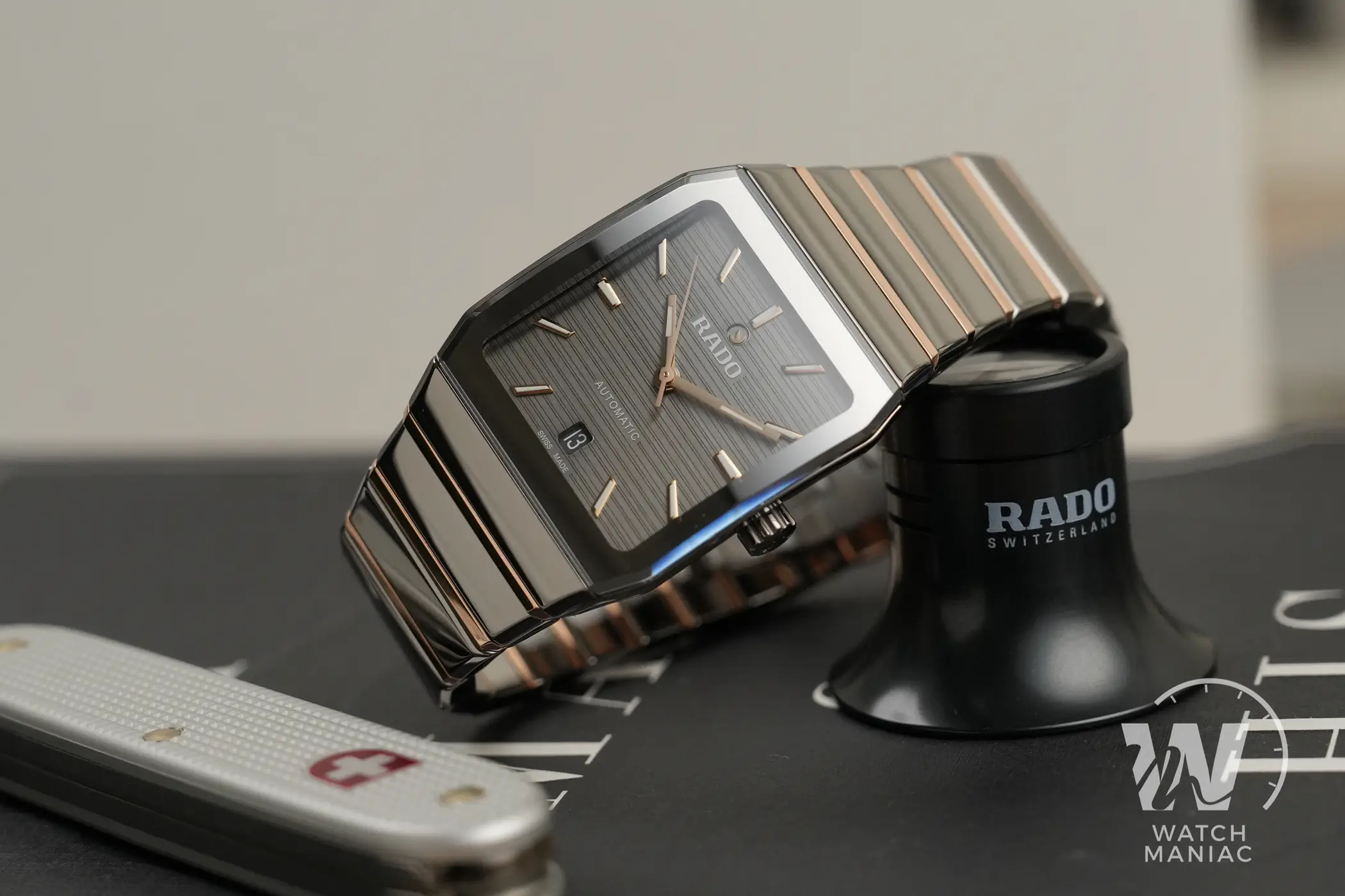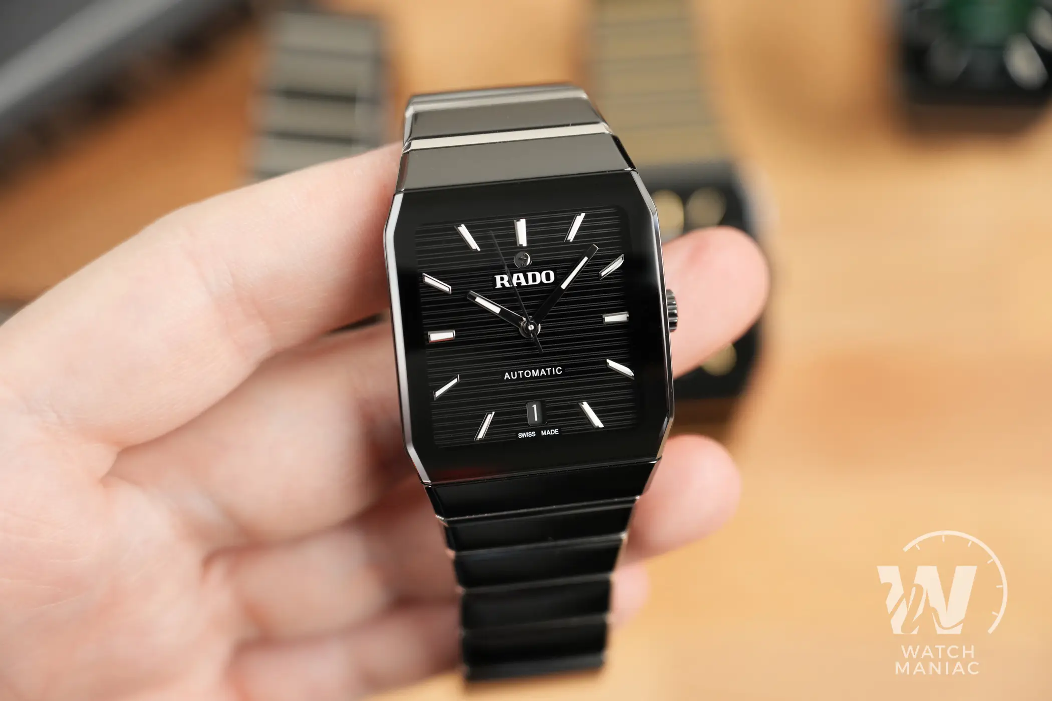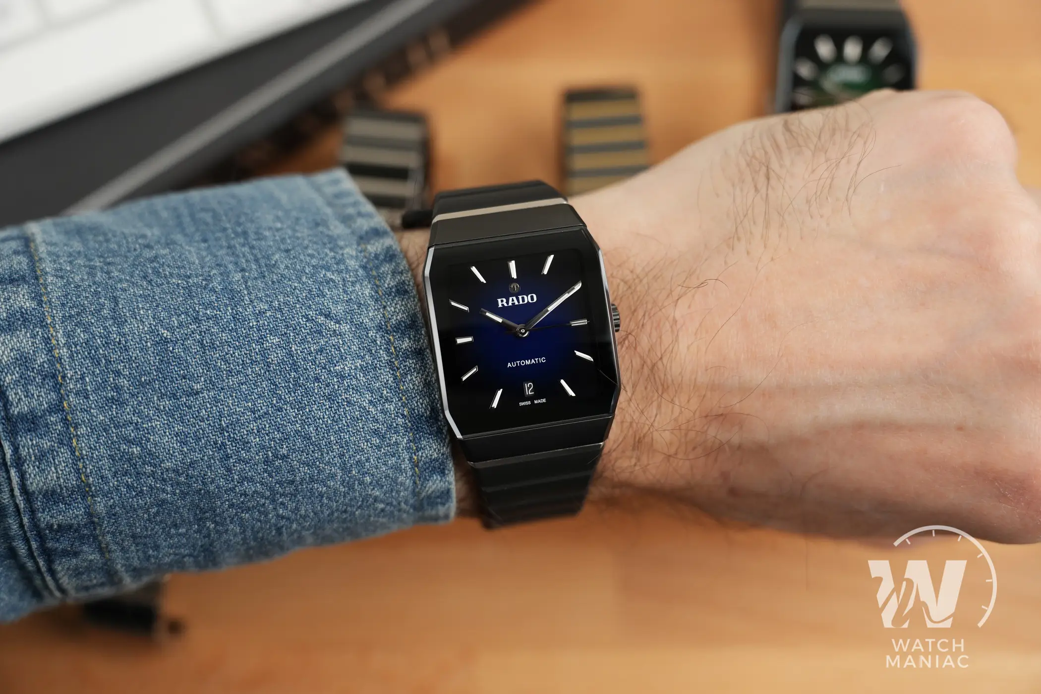 A volte noi appassionati siamo abituati a rimproverare i vari produttori per la loro mancanza di originalità e carattere. Il Rado Anatom è un modello con un design estremamente caratteristico, frutto di una ricerca mirata ad ottenere anche la miglior ergonomia possibile grazie alla cassa curva. Ma non solo. Come da tradizione per il marchio svizzero “Master of Materials”, l’Anatom porta con sé materiali hi-tech e scelte costruttive particolari e fuori dal coro, con una qualità generale molto alta. Sono orologi che, nonostante il loro peso contenuto, trasmettono grande solidità quando vengono indossati. I miei preferiti restano quelli con cinturino in gomma, un connubio tra sportività, modernità ed eleganza che funziona davvero benissimo. Tra i nuovi con bracciale il mio preferito è senza dubbio quello al plasma, che con la sua colorazione riprende un po’ l’effetto dell’acciaio pur mantenendo tutte le proprietà della ceramica hi-tech.