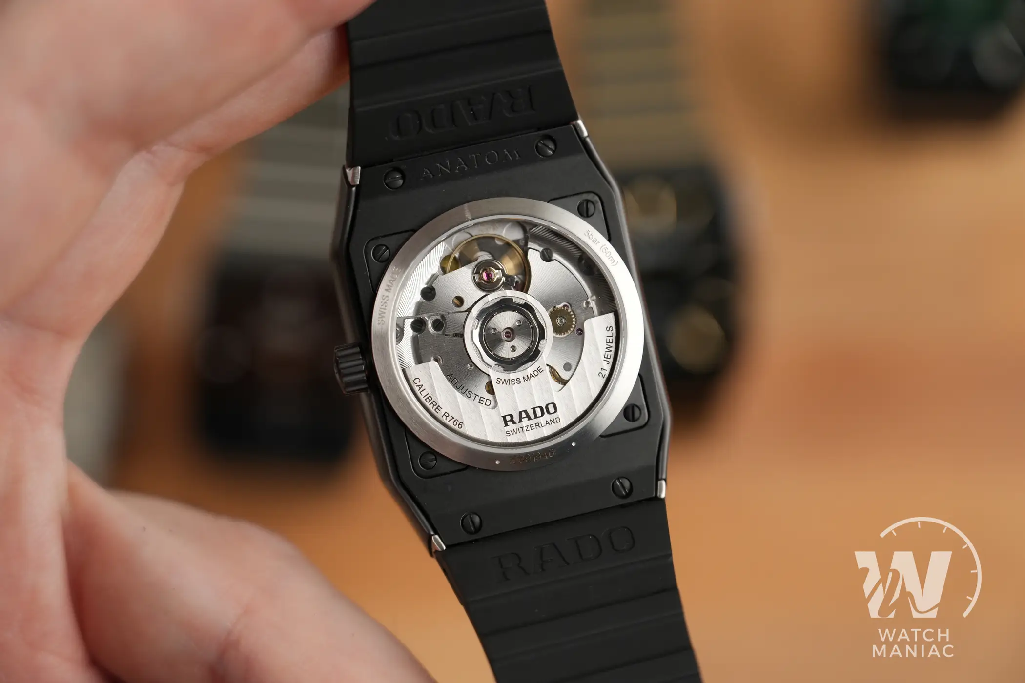 Tutti questi nuovi Anatom sono animati dal calibro R766, basato sull’ETA 2892 con frequenza a 25.200a/h, riserva di carica di 72h, possibilità di ricarica manuale e fermo macchina. È una soluzione particolarmente vantaggiosa non solo per la qualità della meccanica, ma anche per il suo spessore contenuto. In questo caso è presente una massa oscillante personalizzata da Rado con la forma ad ancora.