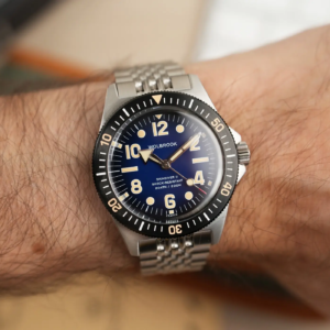 Gli skin diver in questi ultimi anni stanno riscuotendo un grande successo perché, così come i loro antenati degli anni ’60, possono vantare una grande versatilità data dalla buona impermeabilità unita a misure non esagerate. Wolbrook è un produttore storico che proprio con gli skin diver ha costruito una parte rilevante del suo successo. Rispetto alla precedente generazione tutto è stato migliorato e la qualità, reale e percepita, è nettamente superiore. Ottima la scelta di passare ai movimenti Miyota serie 9000 rispetto ai serie 8000. Menzione d’onore poi per il bracciale, davvero bello e ben fatto. Il prezzo di listino è di 599€ con il cinturino tropic e di 639€ con il bracciale in acciaio. In alternativa, se la grafica del quadrante o la misura della cassa non convincono del tutto, da qualche settimana Wolbrook ha aggiunto i nuovi modelli da 38mm.